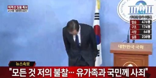 이에 정몽준 의원은 21일 서울 여의도 국회 정론관에서 기자회견을 열어 “침몰 사고 희생자 유가족과 실종자 가족 여러분. 그리고 국민 여러분께 머리 숙여 깊이 사죄드립니다”며 거듭 사과의 뜻을 전했다.