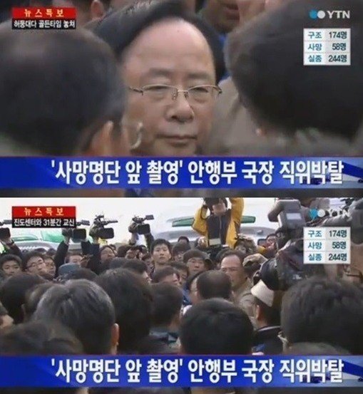 청와대 민경욱 대변인은 이날 브리핑에서 "어제 실종자와 희생자 가족의 슬픔을 헤아리지 못하고 기념사진 촬영을 시도해 공분을 샀던 안행부 공무원은 일벌백계 차원에서 사표를 즉각 수리했다"고 밝혔다.