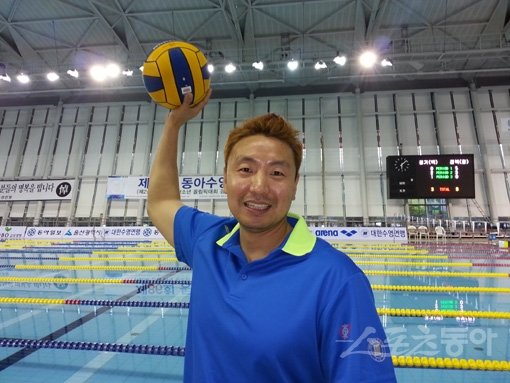 전 수구국가대표 이명우가 제86회 동아수영대회가 열린 울산 문수실내수영장에서 활짝 웃고 있다. 이명우는 ‘배구스타’ 김연경의 외삼촌으로, 2006도하아시안게임에는 조카와 함게 태극마크를 달았다. 울산|전영희 기자 setupman@donga.com 트위터@setupman11