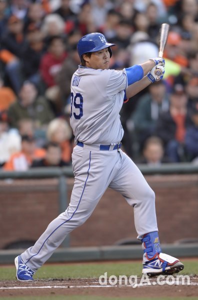 이날 류현진은 1-2로 뒤진 2회말 2사 1루 상황에서 콜로라도 선발 투수 호르헤 데 라 로사를 상대로 안타를 때려냈다.
