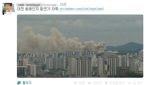 이에 누리꾼들은 각종 SNS에 “대전 대화동 아모레퍼시픽 공장에 화재가 발생해 연기가 자욱하다”, “시야를 확보하기 어려워”는 등의 목격담을 전했다.