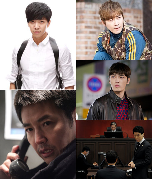 한동안 안방극장을 강타했던 여배우의 기세가 줄었다. 대신 ‘너희들은 포위됐다’ 이승기· ‘빅맨’ 강지환·‘트라이앵글’ 김재중·‘개과천선’ 김명민·‘갑동이’ 윤상현이 남자들의 이야기로 안방극장을 채운다.(왼쪽 위부터 시계방향으로) 사진제공|SBS·KBS미디어·태원엔터테인먼트·MBC·CJ E&M