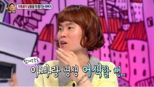 박지선은 28일 방송된 KBS 2TV 대국민 토크쇼 ‘안녕하세요’에 출연, 남들에게 다 퍼주는 아버지의 사연을 듣고 함께 고민했다.