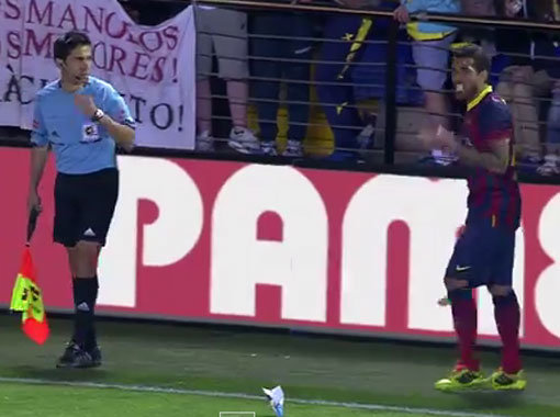 후반 30분 코너킥을 준비하던 다니엘 알베스 앞으로 비야레알의 한 팬이 던진 바나나가 떨어졌다. 그라운드에서 바나나는 인종차별을 의미한다.