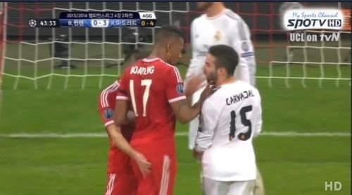 그는 팀이 0-3으로 끌려가던 전반 43분 다니엘 카르바할(레알 마드리드)의 뺨을 때렸다. 주심으로부터 별다른 제재를 받지 않았지만 이 장면은 중계 카메라에 고스란히 포착돼 전파를 탔다.