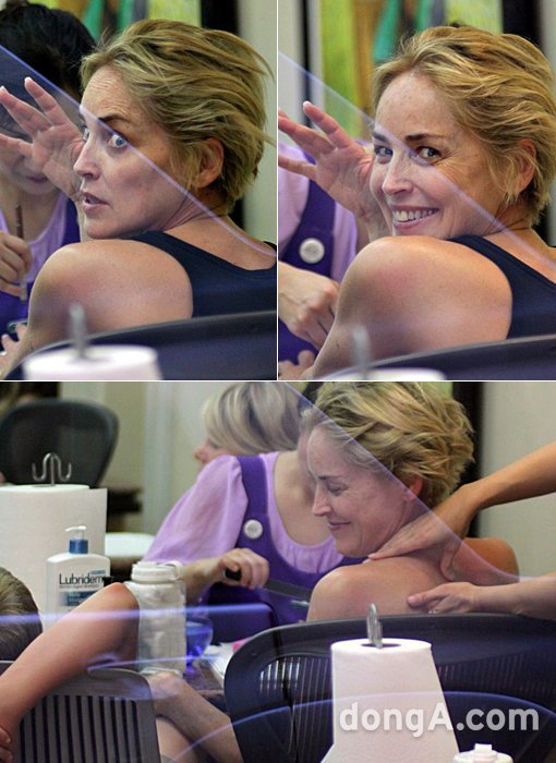 미국의 연예매체 스플래쉬닷컴은 30일(이하 현지시각) 캘리포니아주 로스앤젤레스 비벌리힐스 인근의 한 네일샵에서 손톱 관리를 받는 샤론 스톤의 모습을 공개했다.