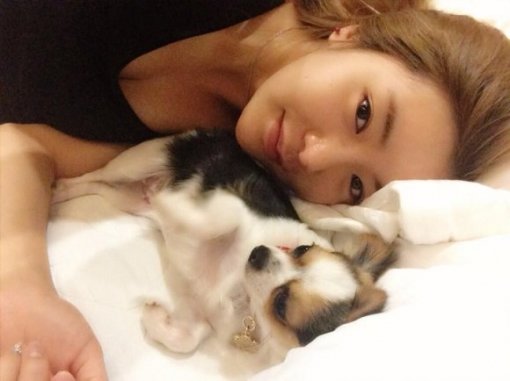 사진에는 안신애가 애완견과 함께 침대에 누운 모습이 담겨 있다. 그는 카메라를 바라보며 여배우 못지않은 비주얼을 과시하고 있다. 해당 사진은 안신애가 지난해 여름 자신의 트위터에 올린 것으로 알려졌다.