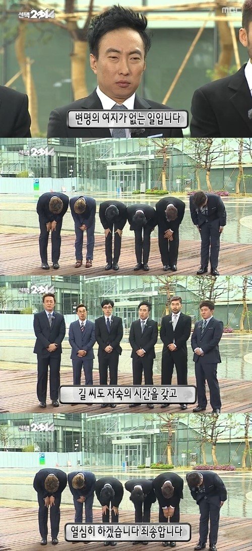 특히 "길 씨도 자숙의 시간을 갖고 뼈저리게 반성하고 있을 것"이라며 "방송 외적으로도 더욱 신중한 '무한도전'이 되겠다"고 사과의 말을 건넸다.