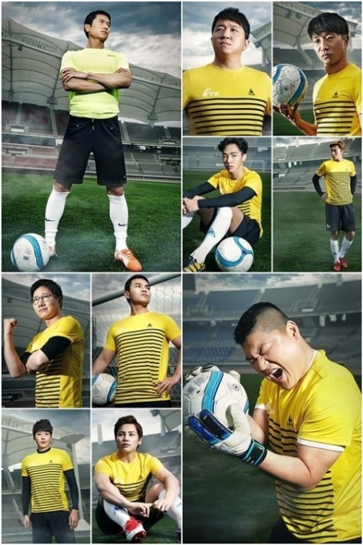 특히 골키퍼 장갑을 끼고 공을 쥐고 있는 강호동이 포효하고 있는 표정이 눈길을 끈다. 사진을 본 누리꾼들은 강호동이 '우리동네 예체능' 축구팀 골키퍼를 맡는 게 아니냐는 의견을 보내고 있다.