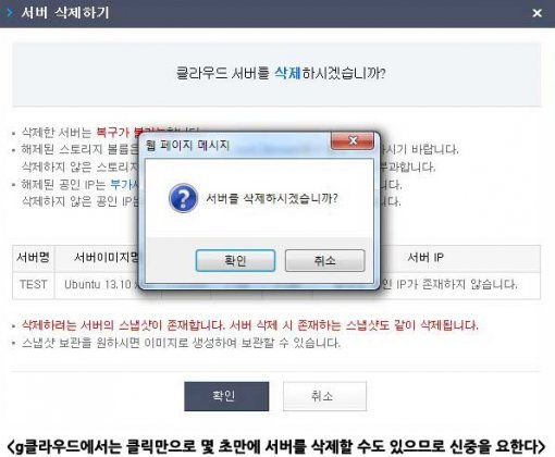 물론 g클라우드와 같은 클라우드 서버 서비스는 서비스의 가입과 서버의 생성, 서버 사양의 변경은 물론, 서버의 삭제까지 마우스 클릭 몇 번으로 수 분 이내에 할 수 있으며, 요금 역시 이용한 시간 분량 만큼만 내면 된다. 따라서 시험 삼아 임시로 운영해 본 후, 만족스럽지 않으면 곧장 서비스를 해지해 추가적인 요금 부담을 억제할 수 있으므로 위험 부담은 적은 편이다. 한계가 분명하지만, 이를 극복할 수 있는 해답 역시 갖추고 있는 것이 클라우드 서버 서비스의 최대 장점이라고 할 수 있다.