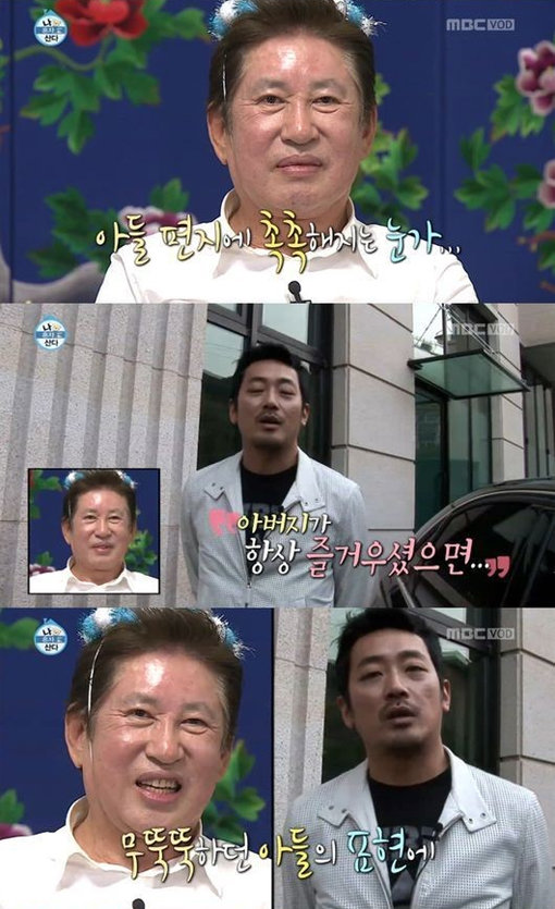 배우 김용건이 아들인 배우 하정우의 영상편지를 받고 눈시울을 붉혔다.
