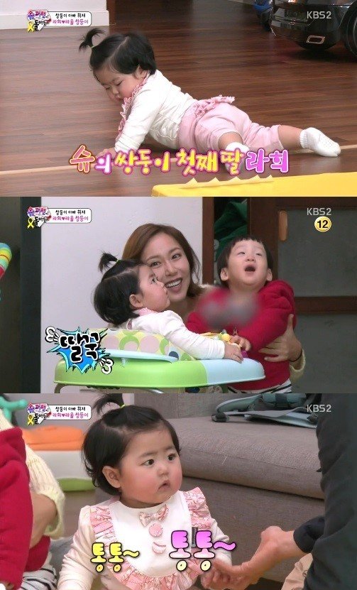 슈의 쌍둥이 딸은 통통하고 귀여워 눈길을 끌었다. 엄마인 슈와 똑 닮아 웃음을 자아냈다.