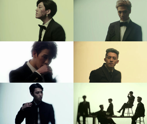 이번에 공개된 영상에는 5명의 멤버가 검은색 수트를 입고 독특한 헤어와 메이크업을 하고 화보 촬영을 연상케 하는 모습을 담아내 눈길을 끈다.