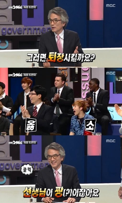 시사 평론가 정관용이 박명수를 녹화 현장에서 퇴장시키는 것도 감수한 진행을 보여줘 눈길을 끈다.