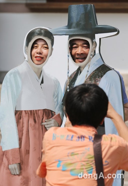 성년의 날인 19일 오전 서울 중구 남산골 한옥마을에서 관광객들이 기념 사진을 찍고 있다. 이날, 만 20살이 되는 젊은이들을 위한 전통 성년식은 취소 됐다.