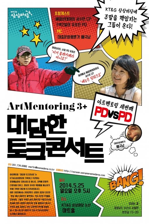 KT&G가 25일 충남 논산에 위치한 KT&G 상상마당에서 ‘아트멘토링-대담한 토크콘서트 PD VS PD’를 개최한다.