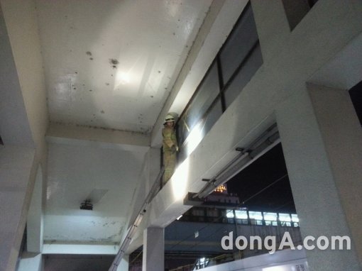 [포토] 금정역 사고 현장, 벽에 올라가 수습중인 대원 ‘보기만 해도 아찔’
