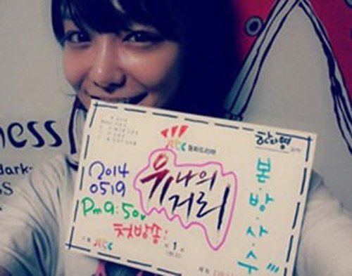 배우 신소율은 지난 19일 자신의 트위터에 “지금 바로 JTBC를 틀어요!! 유나의 거리 1회 방송 중”이라는 글과 함께 한 장의 사진을 게재했다.
