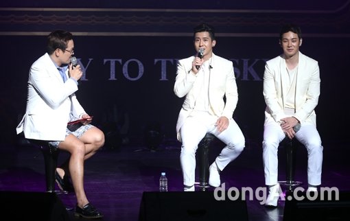 남성 R&B 듀오 플라이투더스카이가 20일 오후 서울 송파구 올림픽공원 K아트홀에서 열린 플라이투더스카이 쇼케이스 무대에서 인터뷰를 하고 있다.