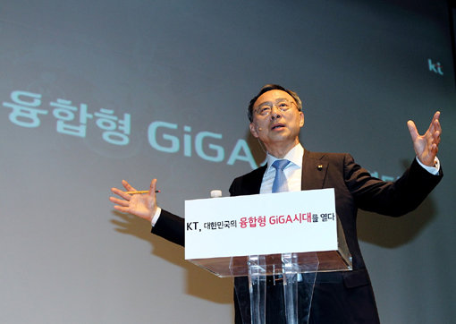 황 회장은 인사말을 통해 “판도라의 상자를 열어보니 많은 고난들이 쏟아져 나왔고, 불면의 밤을 보냈다”면서도 “하지만 마지막엔 1등 DNA도 확인할 수 있었다”고 말했다. 이처럼 숨겨진 KT의 역량을 극대화한다는 것이 황 회장의 장기 플랜이다. 그가 ‘1등 KT’를 위해 찾은 KT의 핵심역량과 해법은 ‘기가’와 ‘융합’이다. KT는 우선 향후 3년 동안 4조5000억원을 투입해 유무선이 통합된 기가 인프라를 구축할 계획이다. 지금보다 10배 빠른 인터넷, 빅데이터와 클라우드 등을 기반으로 5대 미래 융합서비스를 선정해 집중 육성한다는 방침이다. 황 회장이 제시한 5대 융합서비스는 ‘스마트 에너지’와 ‘통합 보안’, ‘차세대 미디어’, ‘헬스케어’, ‘지능형 교통관제’다. 통신과 이종 산업 간의 시너지 창출을 차세대 성장 동력으로 삼는다는 것이다.