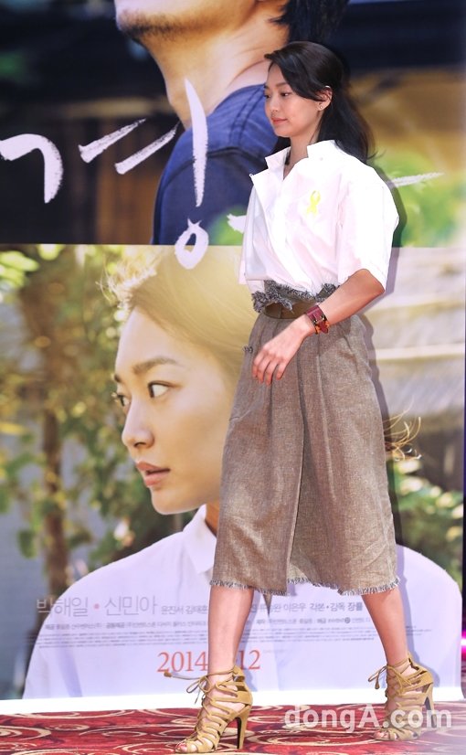배우 신민아가 21일 오전 서울 광진구 건대입구 롯데시네마에서 열린 영화 ‘경주’의 제작보고회에 참석하고 있다.