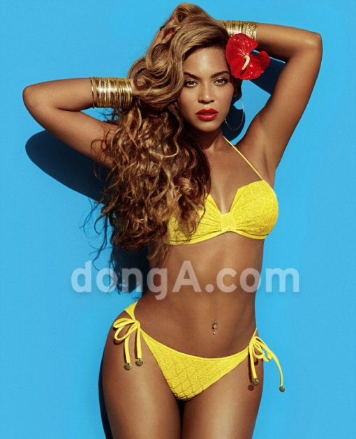 화보 속 비욘세는 옐로우 톤의 스프링 비키니를 입은 채 아찔한 매력을 발산하고 있다. 특히 한쪽으로 넘긴 머리와 큰 꽃을 장식해 섹시하면서도 묘한 매력을 발산해 눈길을 끈다.