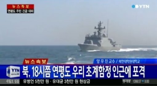 북한 연평도 초계함정 인근 포격. 사진=보도화면 캡처.