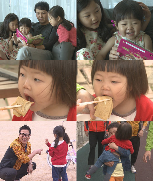 최근 MBC ‘일밤-아빠! 어디가?’(이하 아빠 어디가) 녹화에서 류진 부자와 윤민수 부자가 정웅인의 세 딸을 데리고 정세윤의 학교 운동장에서 함께 놀며 즐거운 시간을 가졌다.