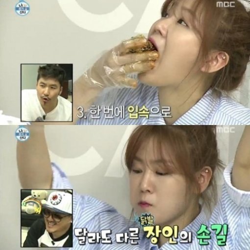 소유는 친구에게 "닭발은 그렇게 먹는 게 아니다"라고 쓴소리하며 닭발을 폭풍흡입했다. 이를 지켜본 데프콘은 주먹밥을 닭발 양념에 찍어 먹는 소유의 모습에 "닭발을 캐러멜처럼 먹는다"라고 감탄했다.