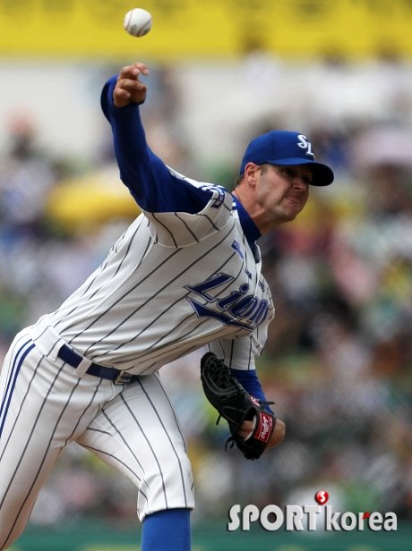 25일 오후 대구 시민구장에서 열린 ‘2014프로야구’ 삼성 라이온즈와 넥센 히어로즈의 경기에서 삼성 밴덴헐크가 투구하고 있다. 밴덴헐크는 올 시즌 6경기에 등판 4승 1패와 평균자책점 3.00을 기록하고 있다.