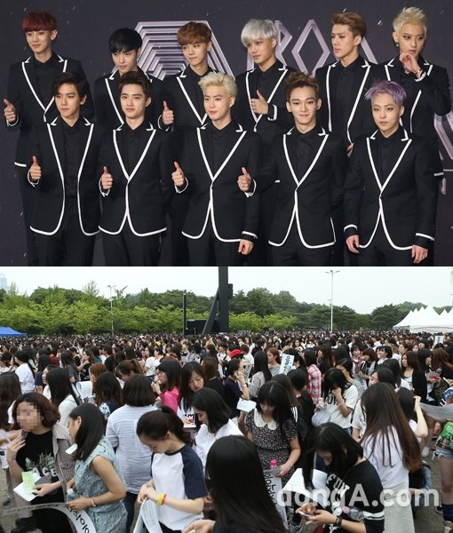 25일 낮 12시 서울 방이동 올림픽체조경기장. 엑소의 공연이 열리기 4시간 전인데도 1만여 팬들은 공연장 주변을 둘러쌌다. 팬들은 MD상품을 구입하거나 엑소 멤버들의 이름이 새겨진 카드를 얻기 위해 긴 줄을 이루기도 했다. 하지만 어느 곳에서도 크리스는 없었다.