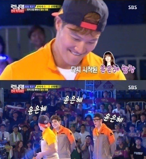 지석진, 전북대 팀과 함께 결승행을 놓고 겨루던 김종국은 학생들의 갑작스러운 윤은혜 이름 연호에 당황하기 시작했다.