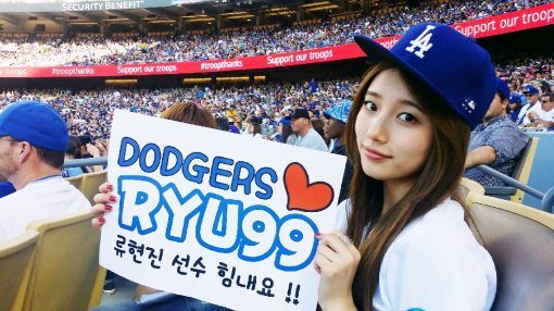 수지 류현진 응원, LA 야구장 올킬하는 응원녀 “힘내요”