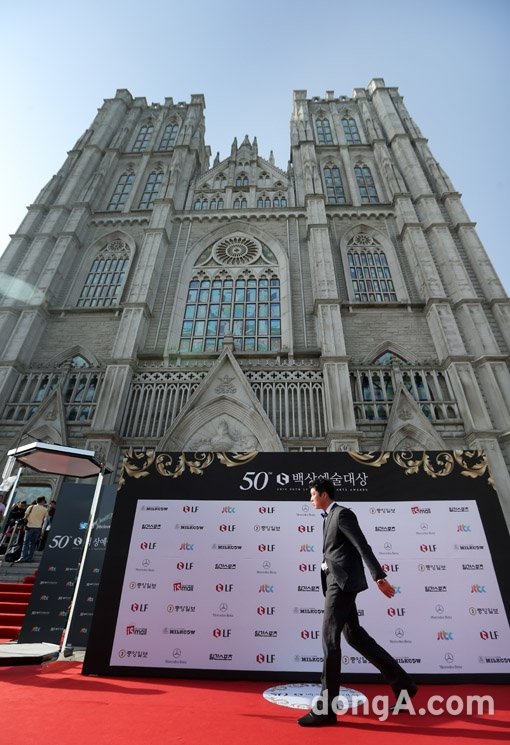 27일 오후 서울 동대문구 경희대 평화의전당에서 열린 50회 백상예술대상에 레즈카펫에서 관계자들이 행사 준비를 하고 있다.