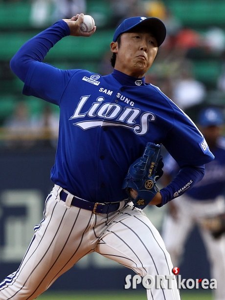 27일 오후 서울 잠실야구장에서 열린 ‘2014 한국 야쿠르트 세븐 프로야구’ LG 트윈스와 삼성 라이온즈의 경기에서 삼성 선발 배영수가 역투하고 있다.