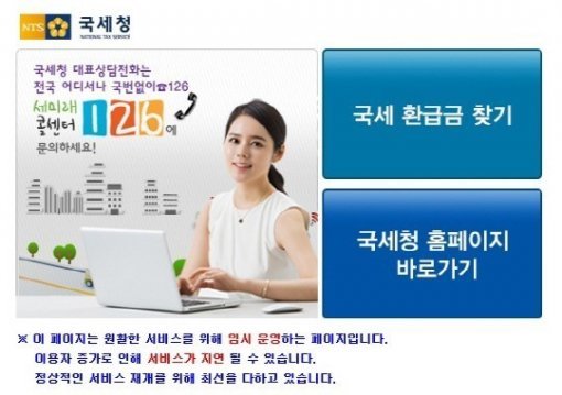 국세청은 14일부터 홈페이지(www.nts.go.kr)를 통해 국세 환급금조회 서비스를 제공하고 있다.