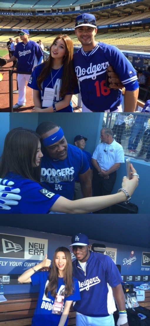 공개된 사진 속에는 야시엘 푸이그, 안드레 이디어, 후안 유리베 등 다저스 주축 선수들이 수지와 다정한 모습으로 사진을 찍고 있는 모습이 담겨 있다.