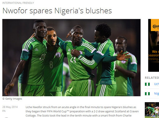 28일(이하 한국시간) 영국 런던 크레이븐 코티지에서 열린 나이지리아와 스코틀랜드의 평가전.