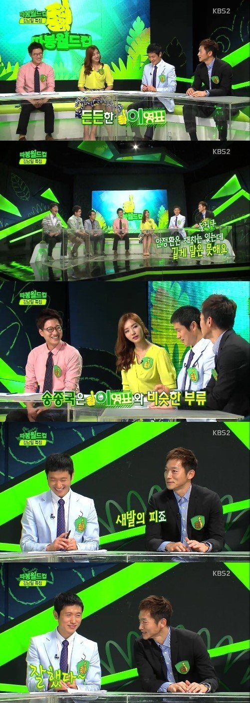 이어 김남일은 “송종국은 이영표와 비슷한 부류다. 말주변은 있지만 이영표에 비하면 새발의 피다”고 덧붙였다. 이에 이영표는 흐뭇하게 웃으며 “잘했다”고 말해 웃음을 자아냈다.