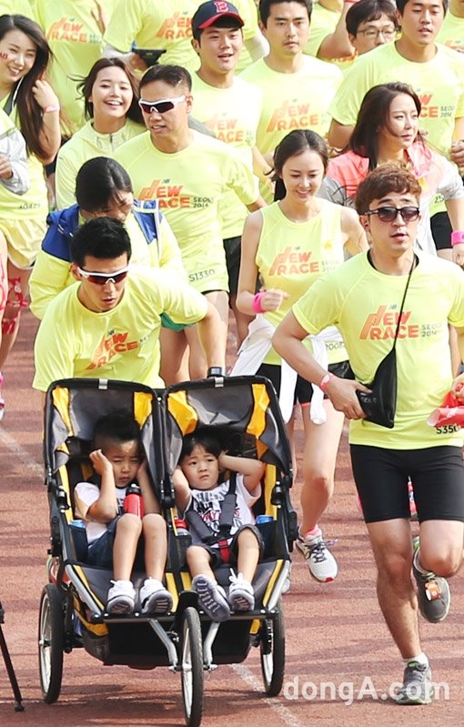 가수 션이 1일 오전 서울 잠실종합운동장 올림픽주경기장에서 열린 글로벌 스포츠 브랜드 뉴발란스마라톤 대회 '2014뉴레이스 서울'에서 역주하고 있다.