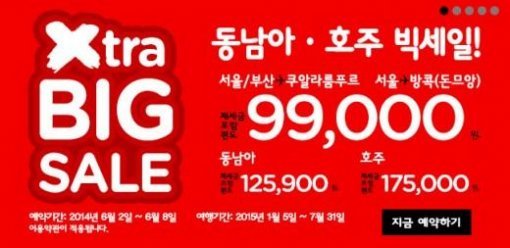 모든 특가 요금은 서울/부산 출발 편도 기준으로 제세금이 포함된 요금으로 에어아시아 웹사이트에서 선착순으로 예약할 수 있다.