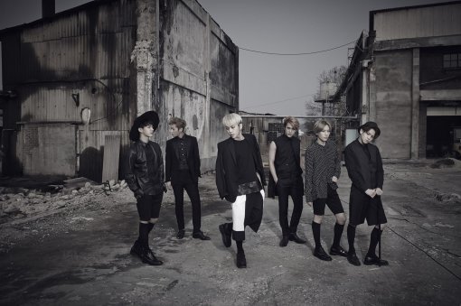 사진 속 여섯 명의 멤버들은 폐허가 된 공장을 배경으로 포즈를 취하고 서있다. 흑백 느낌으로 처리된 이 사진에서 이들은 시크한 블랙 색상 의상을 입고 각자의 매력을 뽐냈다.