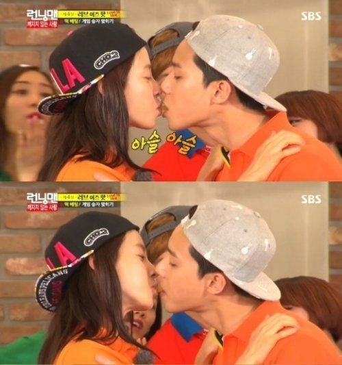 이날 방송에서 송지효와 박서준은 “우린 연기자”라며 강한 자신감을 드러냈다. 두 사람은 입술이 닿을 듯 말 듯 아슬아슬하게 게임을 펼쳐 개리의 질투를 샀다. 이들은 단무지 4mm를 남겼으나 3mm를 기록한 하연수-김종국 팀에 패했다.