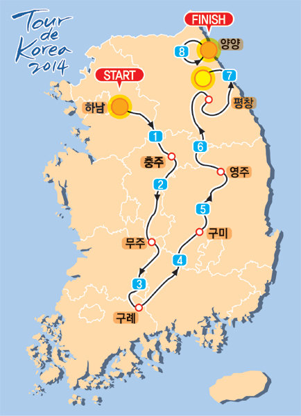 8회째를 맞은 ‘투르 드 코리아 2014’. 참가선수들이 한꺼번에 빠른 속도로 치열한 각축전을 펼치지만, 한 눈에 누가 종합 1위를 달리고 있는지 확인할 수 있다. 대회 규정에 맞춰 부분별 1위 선수에게 특별한 유니폼이 주어지기 때문이다. 대회 개막 개막일인 8일만 특별 저지의 주인이 없을 뿐다.