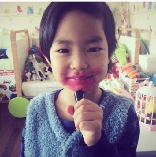 이에 이하루는 장난 넘치는 사진과 함께 태양의 앨범 발매를 응원했다. 사진 속 이하루는 엄마 강혜정의 립스틱을 가지고 입술과 입술 주변을 온통 빨갛게 칠하며 장난을 친 듯한 모습이다.