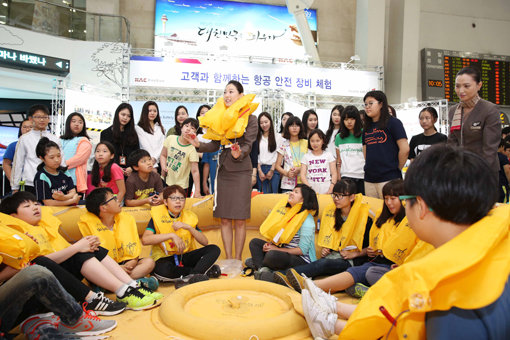 기내 비상장비 13종 20개 품목과 함께 25인승 구명정(LIFT RAFT)을 전시하며 아시아나항공 캐빈서비스훈련팀 안전교관들이 직접 기내 안전수칙 교육과 구명복, 산소 마스크 등 비상장비 착용 체험 교육을 실시한다. 한국공항공사와 함께 심폐소생술, AED(심실자동제세동기) 사용법 관련 시연 및 체험 행사도 진행한다.