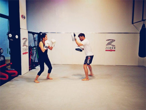 공개된 사진에는 관장에게 복싱을 배우는 곽정은의 모습이 담겨 있다. 자세만큼은 송가연급 못지않게 관장을 향해 강펀치라도 날릴 기세다.