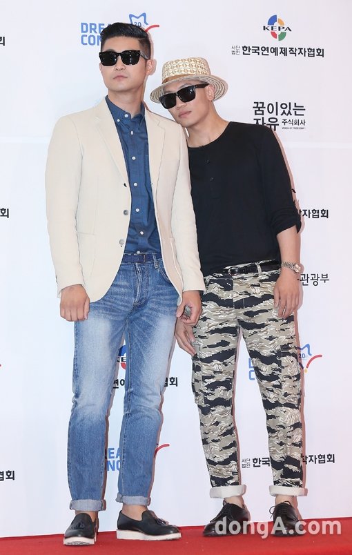 다이나믹듀오가 7일 오후 서울 마포구 상암월드컵경기장에에서 ‘힘내라 대한민국 2014 드림콘서트’(이하 드림콘서트)에 참석해 포토타임을 하고 있다.