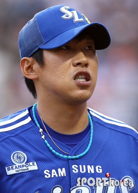8일 오후 대전 한밭구장에서 열린 ‘2014 한국 야쿠르트 세븐 프로야구’ 한화 이글스와 삼성 라이온즈의 경기 5회말 김태균에게 투런포를 허용한 삼성 선발 윤성환이 이닝 종료 후 아쉬워하며 더그아웃으로 복귀하고 있다.