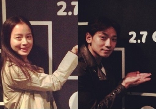 공개 연인인 배우 김태희와 가수 비의 식당 인증샷이 인기를 끌었다.